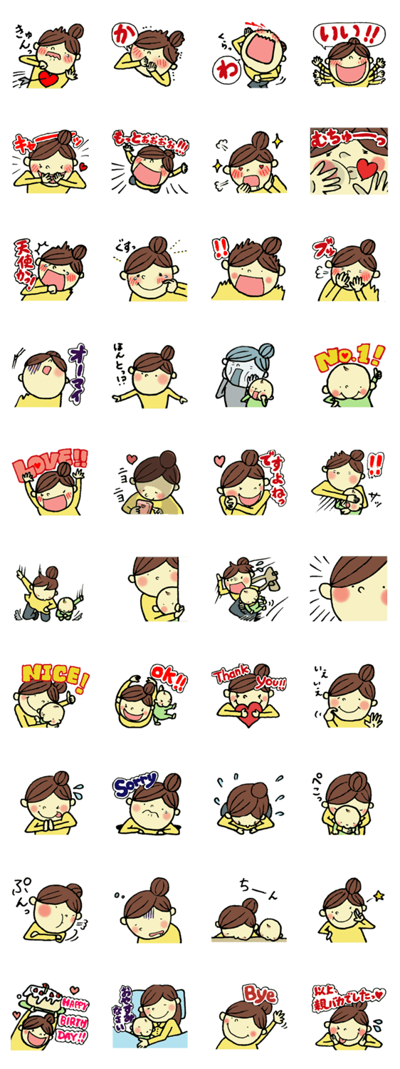 子どもの愛くるしさにきゅんきゅん身もだえするママのためのスタンプ。子どもの画像をやりとりする際や、ママ友との会話にどうぞ。
