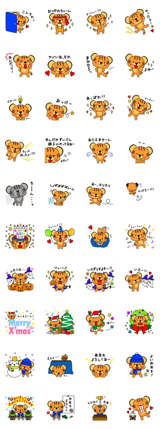 マイペースなトラの「ことら」シリーズ第2弾!!お誕生日・ハロウィン・クリスマス・お正月のごあいさつにも使えるよ♪【ことらいおん】