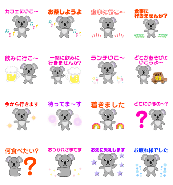 カフェ 食事 飲みにいこー お疲れ様です お茶 今から行きます 待ってます 着きました どこにいるの ? 遊び 可愛い 大人 シンプル 使いやすい 面白い 日常 毎日 コアラ
