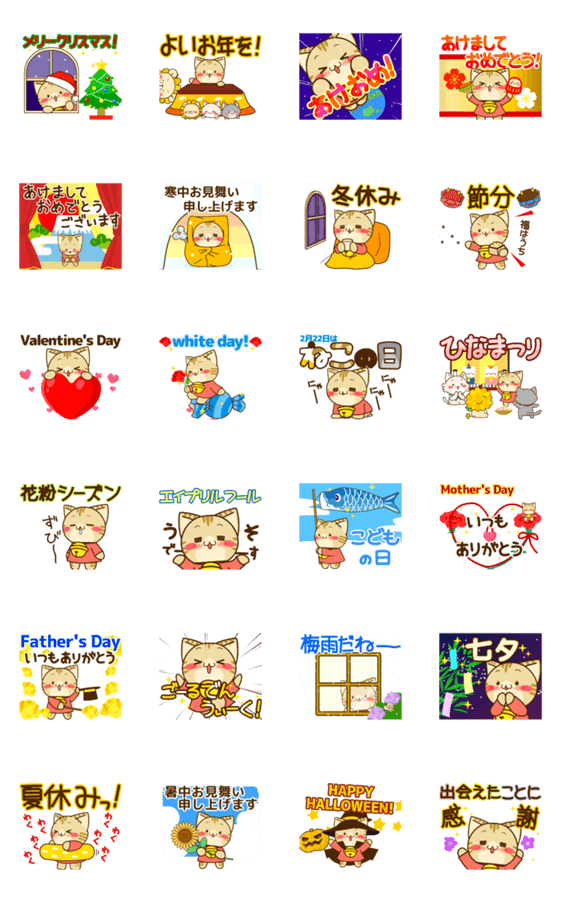 1年間の行事、イベントなど、1年間使えるイベントスタンプ