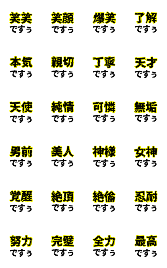 ポジティブな漢字2文字にですぅを付けたデカ文字な動くスタンプです。
