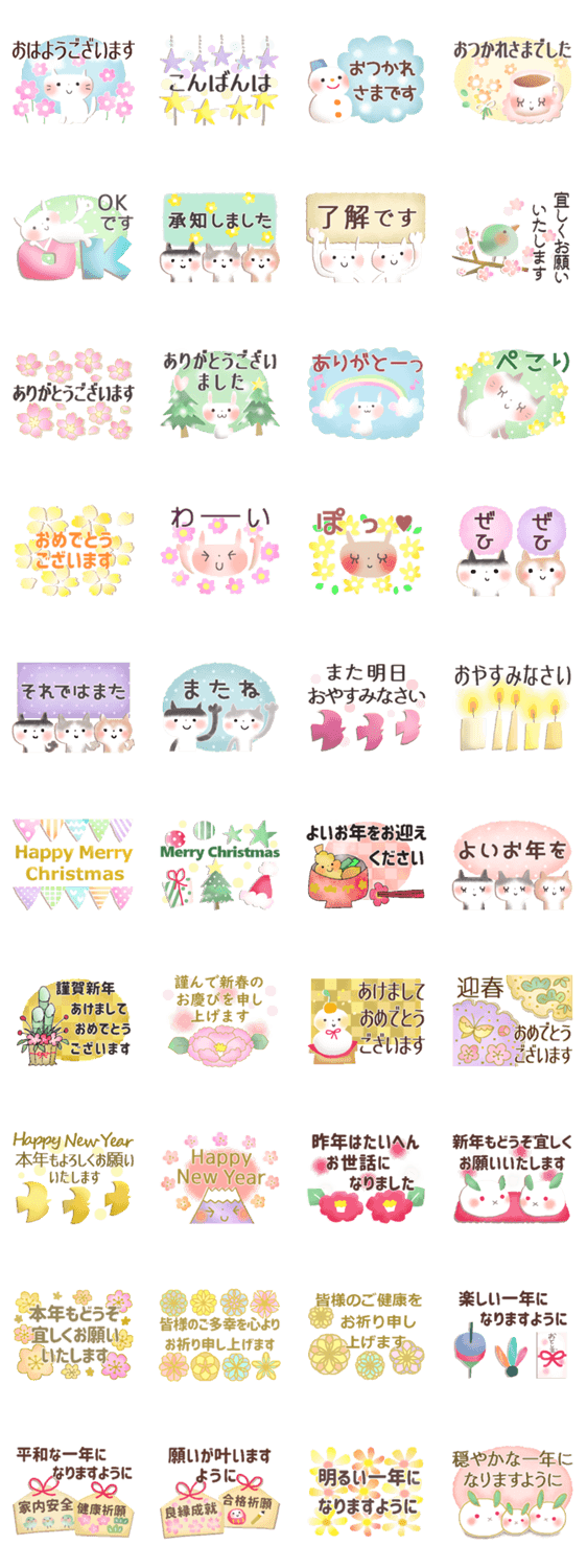 冬に贈るほっこり優しいシンプルなメッセージと、日頃の感謝をこめて気持ちを伝えたい皆様への年賀状。丁寧なことば、敬語が多くて使いやすいスタンプです。