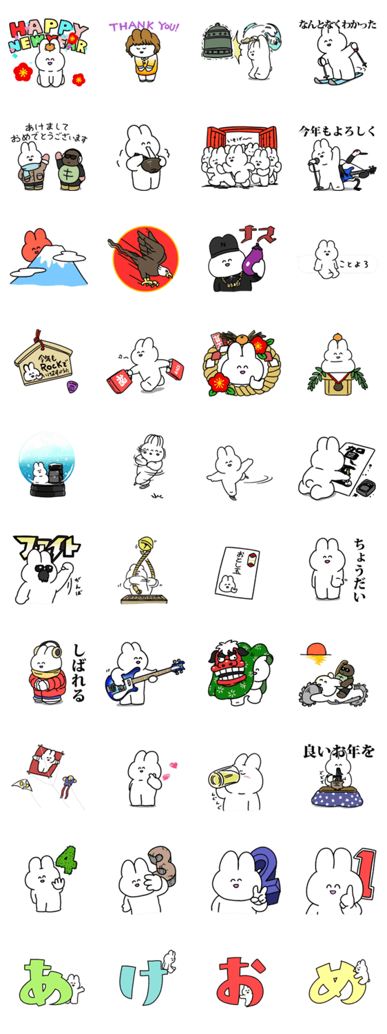 うさぎ年2023年 あけおめにふさわしいうさロックのお正月スタンプです。 カウントダウンに備えよう!※2023/1/3(火)23:59までに購入すると特典「LINEおみくじ」がもらえます。