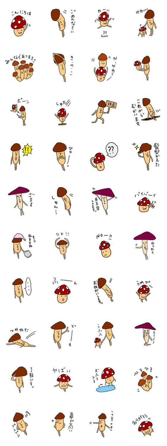 愉快なキノコたちスタンプ -LINEスタンプマニア