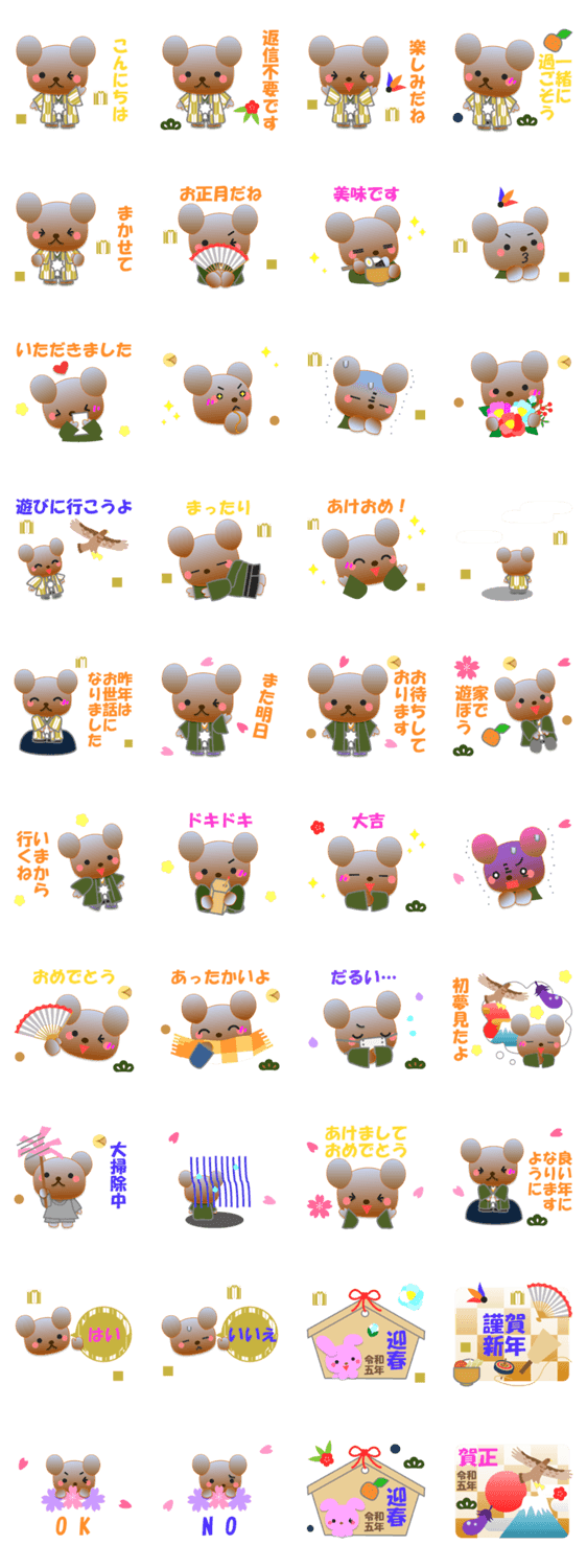 くまのスタンプです。日常でよく使う言葉を集めました。くま好きの方に。お正月バージョンです。