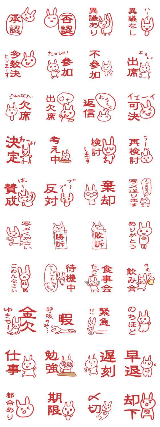 ハンコっぽい、事務連絡ができるうさぎのスタンプ!