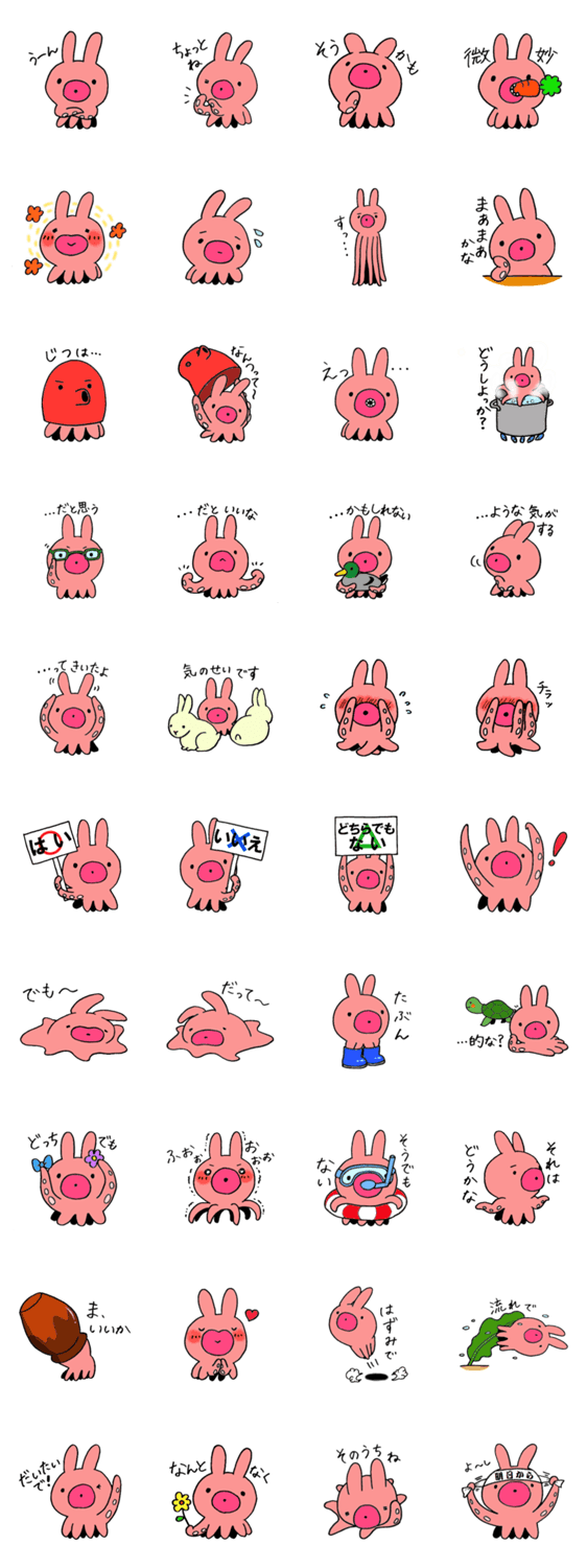 うさぎとタコのハイブリッド生物、うたこちゃん。存在自体があいまいな彼女は、発言だってはっきりしません。