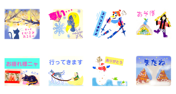 LINEスタンプメーカーでつくったスタンプです。冬の風景を切り絵で作りました。