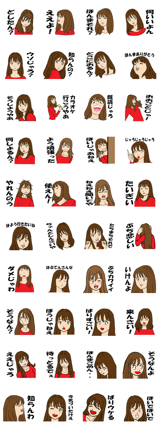 広島弁を話すカワイイ女の子のスタンプ。男子も女子も気軽に使えるスタンプですよ。