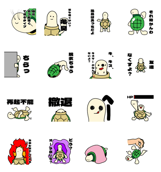 『兎と亀と腐れ縁』の亀ちゃんスタンプ。威圧的だけどもか弱い男の子。
