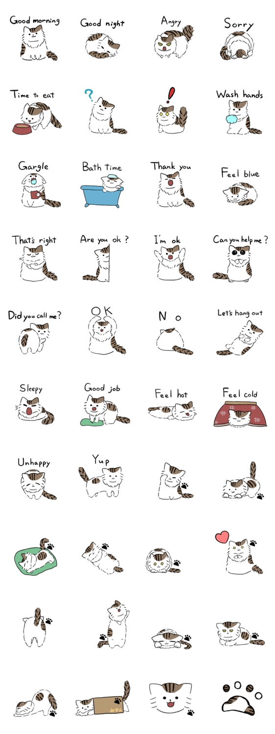 長毛キジトラ白トビにゃんこ(英語) -LINEスタンプマニア