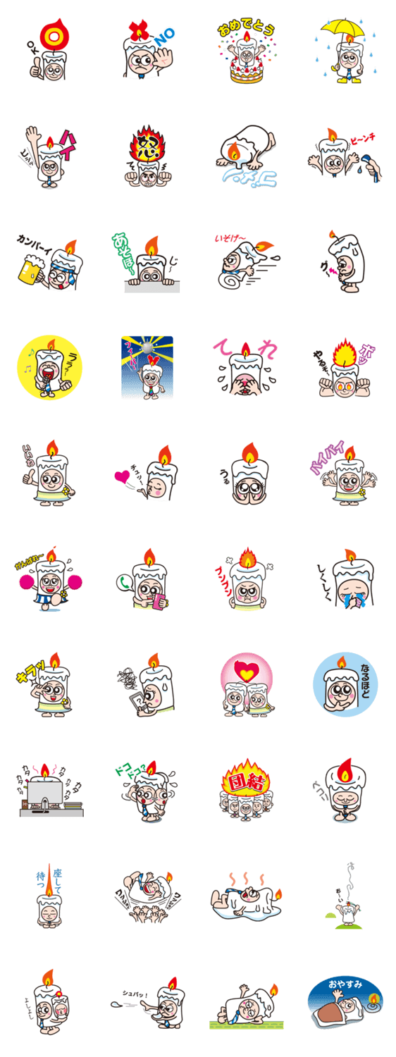 かわいいロウソクキャラクターのスタンプです。男女とわず利用して欲しいです。