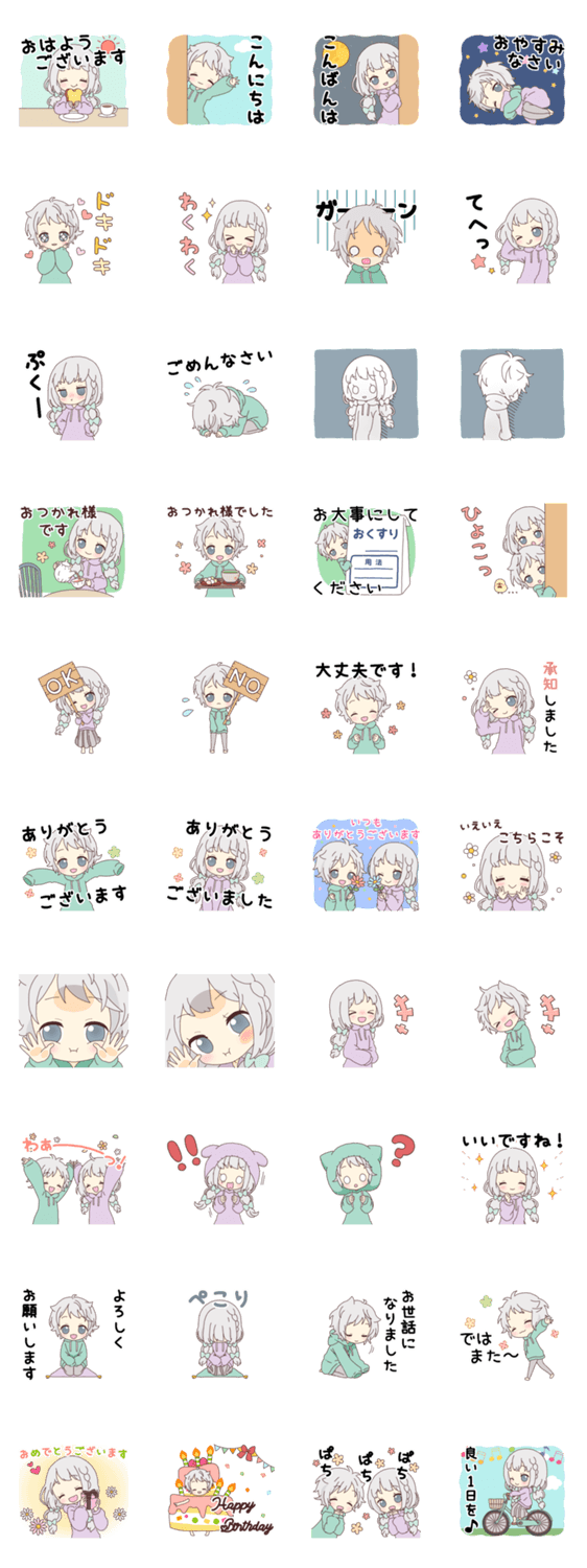 日常で使えそうな敬語挨拶や感情の双子のロコくんモコちゃんスタンプです。