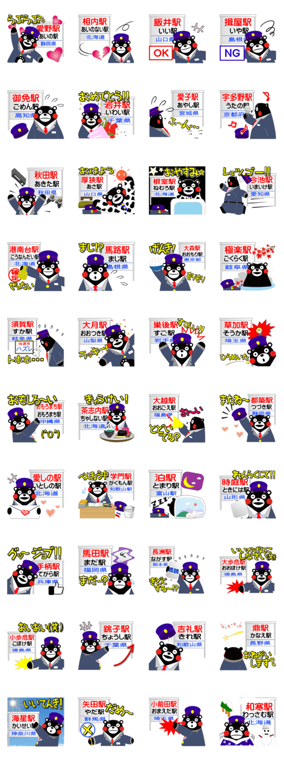 くまモンのスタンプ(駅名で伝えよう編) -LINEスタンプマニア