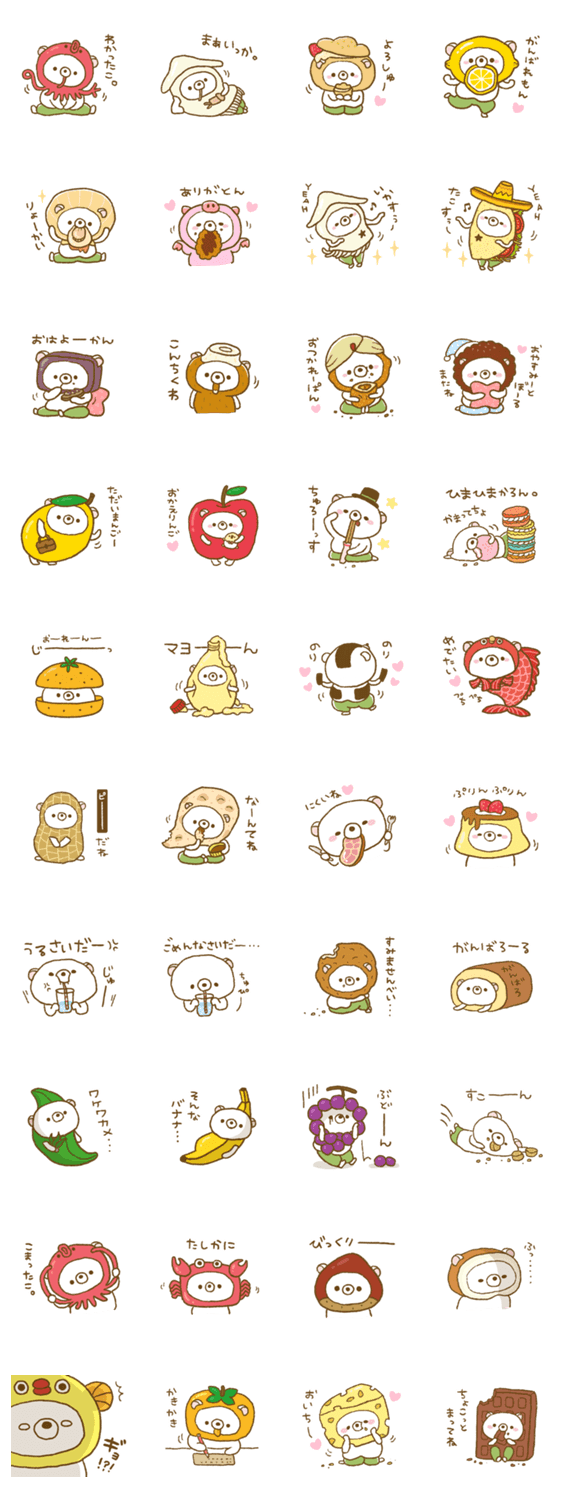 うだうだのんびり、くいしんぼうのうだくまちゃんスタンプ第2弾*食べ物いっぱい美味しいだじゃれ編♪【作・こころ絵作家みどり】