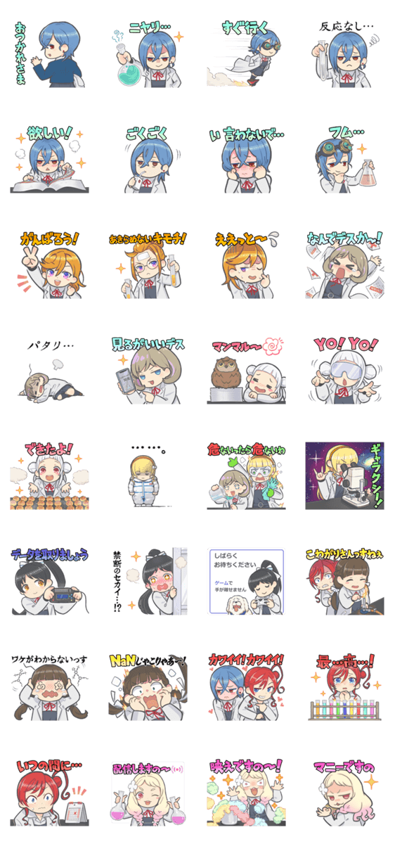 ラブライブ!スーパースター!!とアズワン株式会社のコラボスタンプができました!科学愛好会の活動を手伝うLiella!の可愛いスタンプです♪