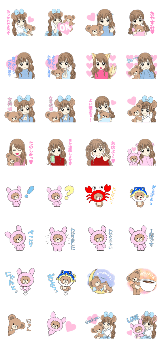 かわいい女の子とくまスタンプ -LINEスタンプマニア