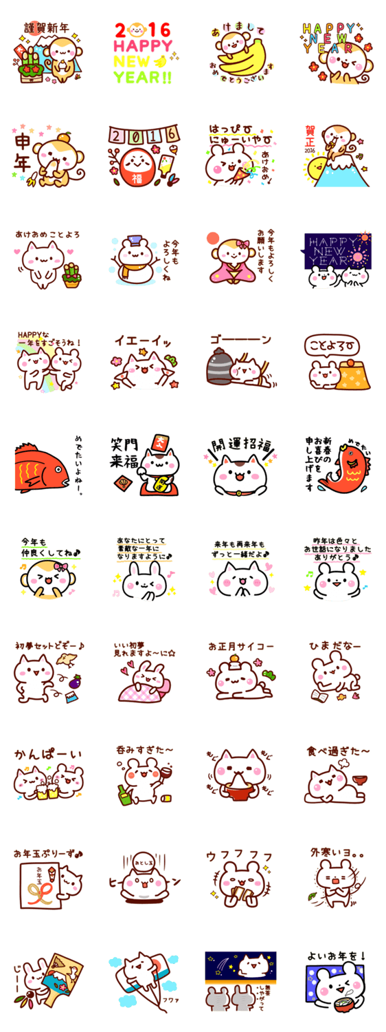 2016☆あけおめお正月スタンプ さる。 -LINEスタンプマニア