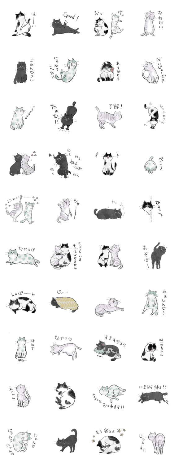 絵本の世界から飛び出した様な、ときめくねこ達のスタンプです