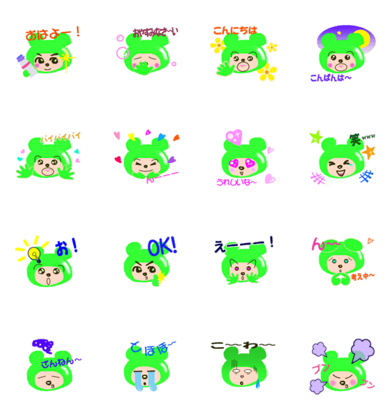 表情豊かでかわいい、鮮やか緑色のクマちゃんです。