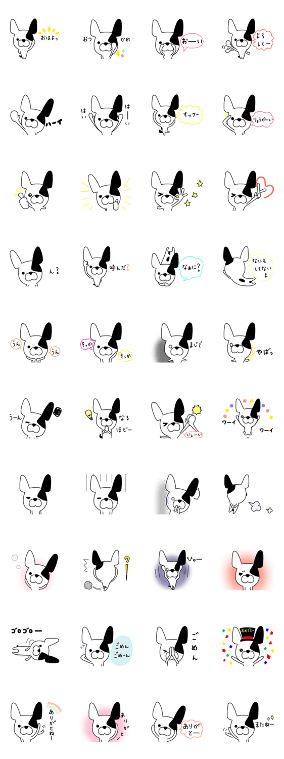 フレンチブルドッグ 「こっちゃん スリム ver.」 の2です。ゆるくてかわいい、リアルすぎないフレブルのスタンプ。