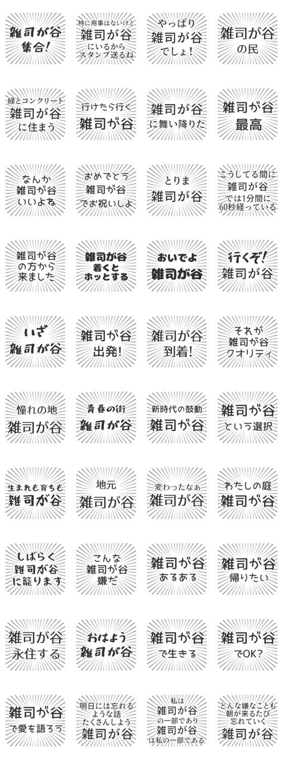 東京を舞台にした漫画風セリフスタンプ。集中線で叫べ。地元の人にも憧れてる人にも。面白いのが見つかると嬉しい。集中線。地元愛。