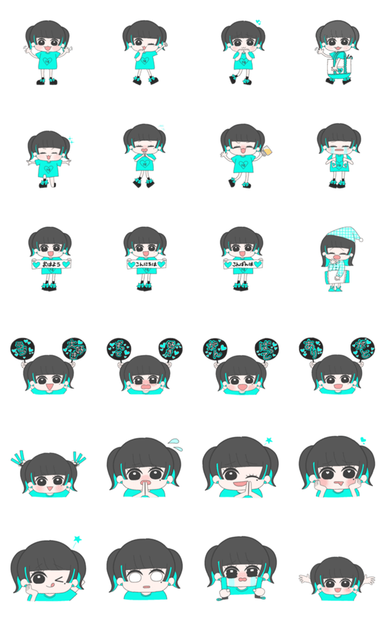 推しのメンバーカラーが水色のオタクへ捧げるスタンプ。ツインテールちゃんver. 全12色