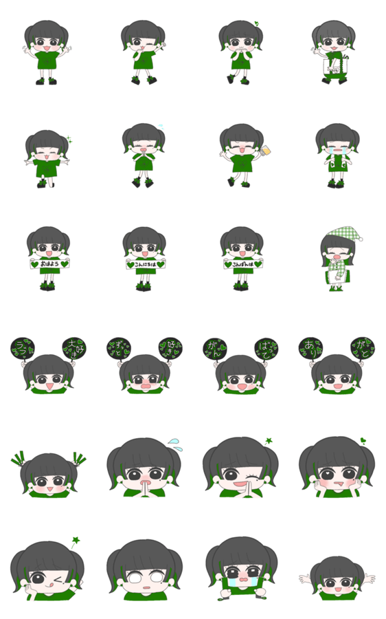 推しのメンバーカラーが緑色のオタクへ捧げるスタンプ。ツインテールちゃんver. 全12色