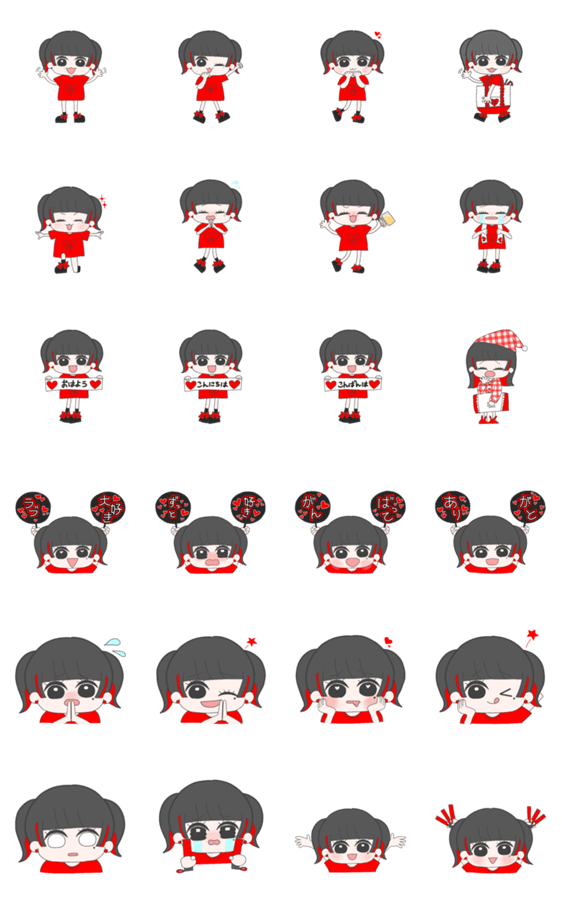 推しのメンバーカラーが赤色のオタクへ捧げるスタンプ。ツインテールちゃんver. 前12色