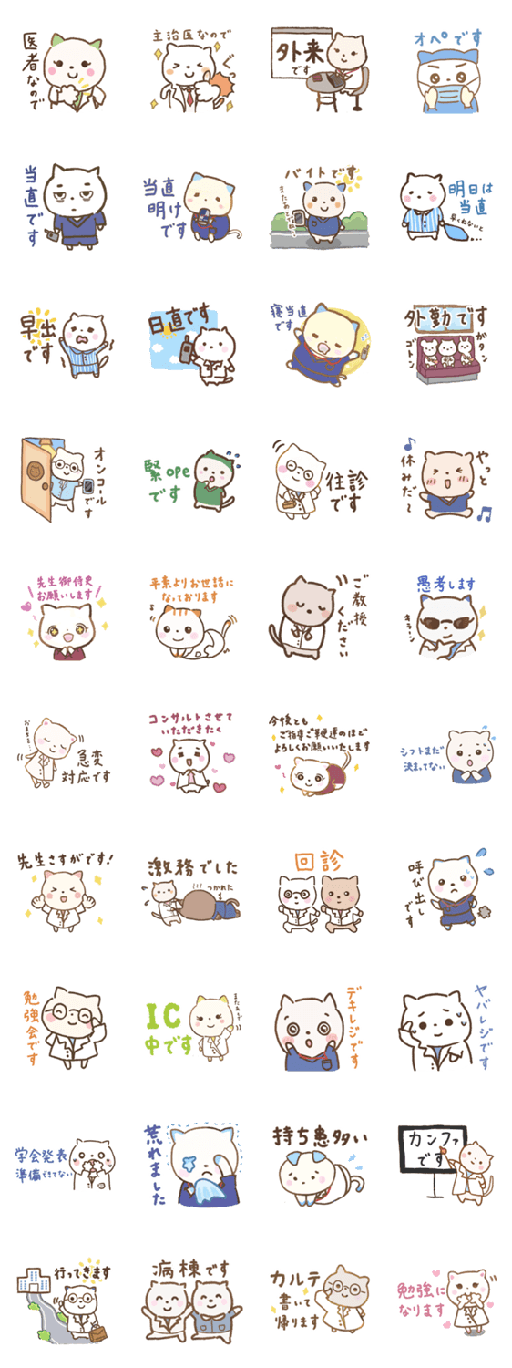 使いやすい猫の医者のスタンプです。ネコ/医者/医師/医療系/病院/ほんわか/癒し/かわいい