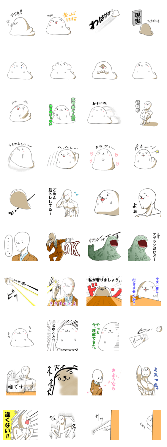 アザラシの『みひょ』のスタンプです。顎が割れてるのではなく、あれはヒレです。アザラシです。