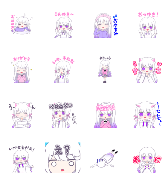 日常で使える紫雪のスタンプです❄︎ 普段の姿とねこ。あなたのLINEに住まわせてください!