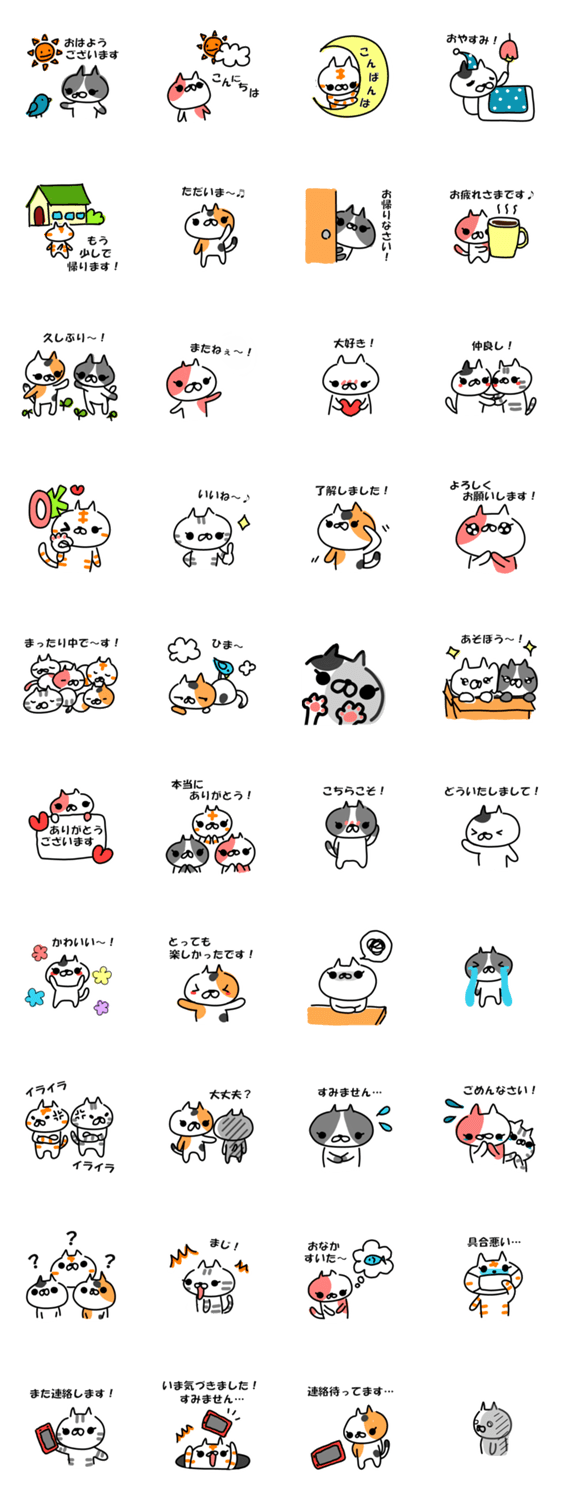 男女問わず幅広い世代で使えるスタンプ♪文字入りだからトークも楽です。かわいい『ねこ』のスタンプ使ってみてください!