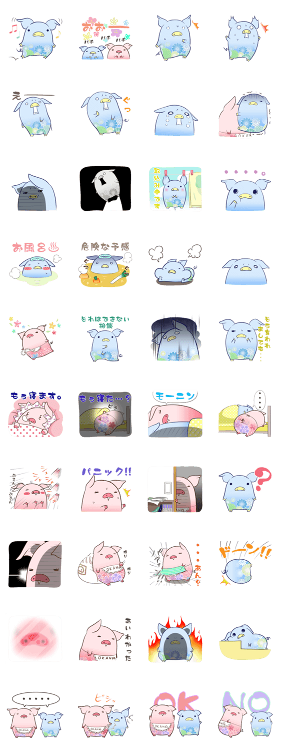 和柄なブタさん親子のスタンプです。
