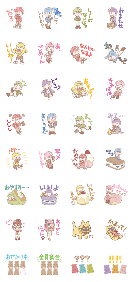 TVアニメ「おそ松さん」から『ラテ』デザインが登場!6つ子達がラテカラーのおしゃれで可愛いファッションのスタンプです♪