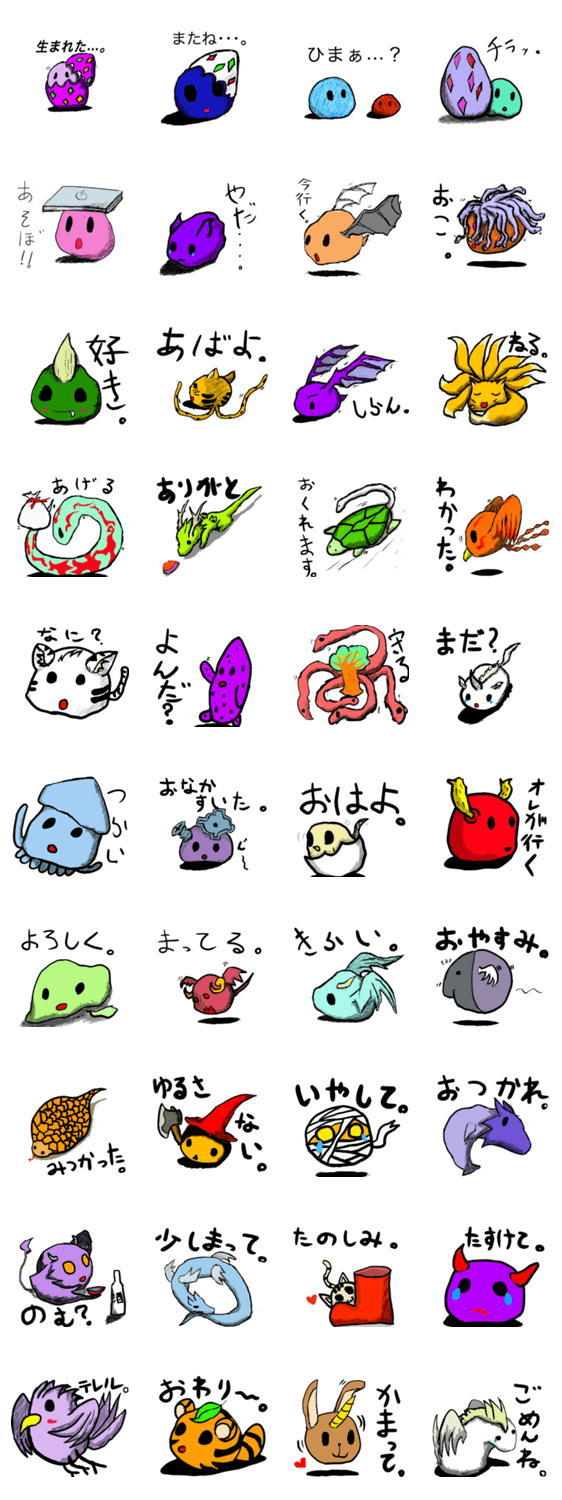 神話のキャラクターや伝説、空想上の生き物をモチーフに書いています。手書き感を全体的に残してます。