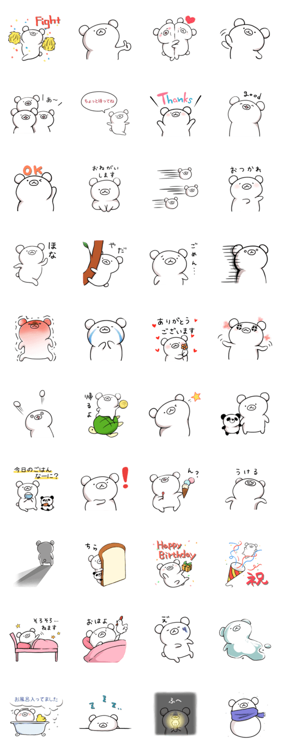 自由でゆかいな癒し系のくま「ちーくま」とパンダの「こっぺ」です。日常のいろんな場面で使えるスタンプを集めました。