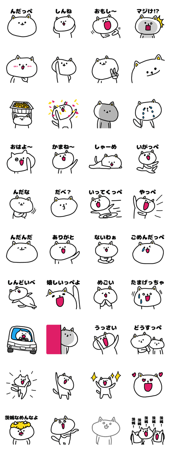 茨城県のスタンプです。猫めが茨城弁を話します。千葉県北部、福島県南部も少し方言が似ています。友達や家族、恋人に便利に使えます!!