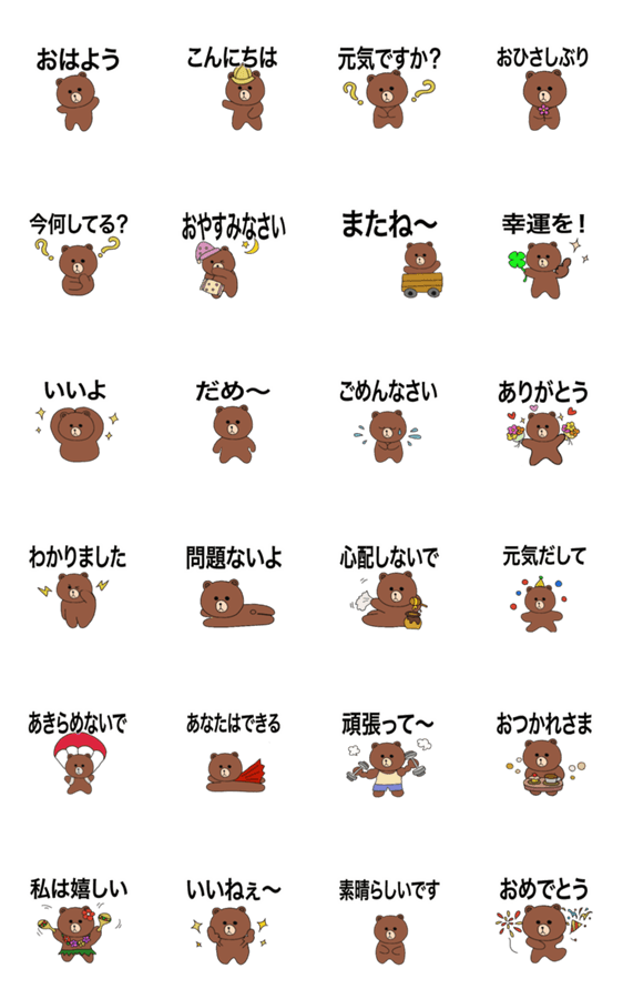 ブラウンが日本語と英語の会話のお手伝いをします。英語を話す方や、英語を学習している方へ使っていただきたいスタンプです。 ※BROWN & FRIENDS をみんなでつくろう!キャンペーン参加スタンプです