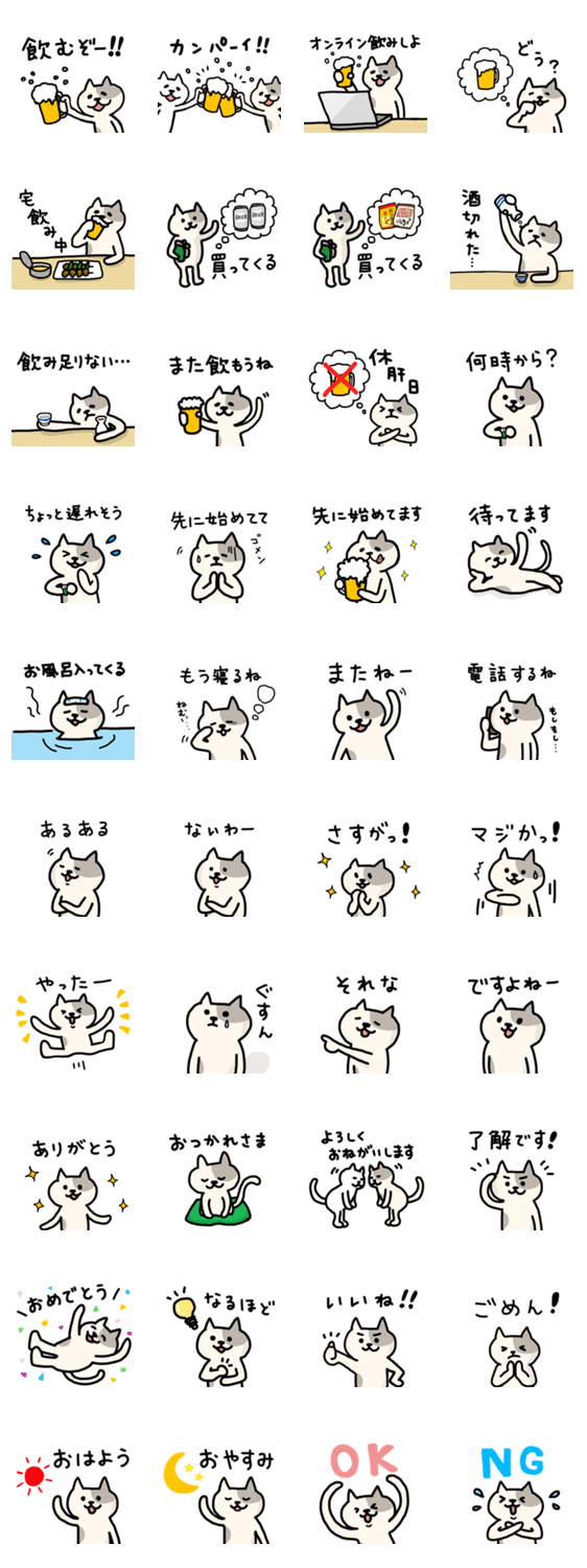 ステイホームでもお酒を楽しみたい!オンライン飲み会、リモート飲み会に使えるスタンプです。日常会話に使えるスタンプもあります。