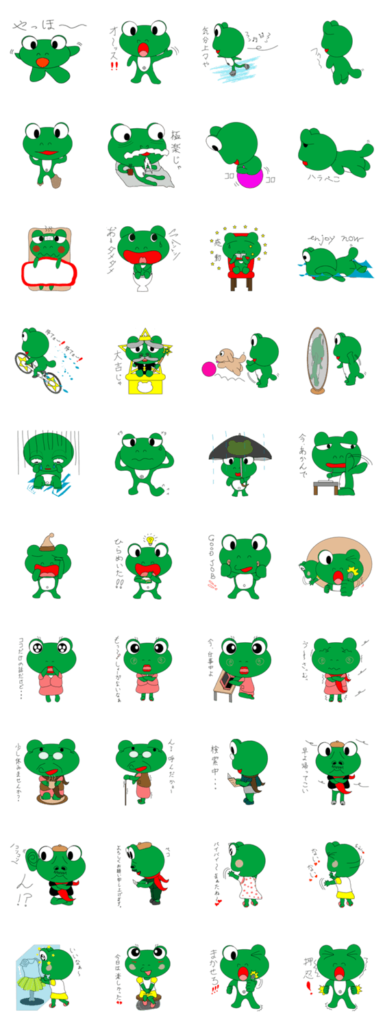 見た目はカエルだがなぜかたま〜に尻尾が生えてくる。ケノ山家の次男で体たらくな毎日を過ごすその名は春治。そしてケノ山家の家族のコミュニケーションスタンプです。