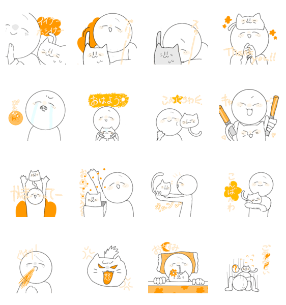 そばかすの人間(?)とネコがわちゃわちゃしてるスタンプです。