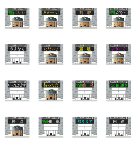ローカル列車と鉄道駅(B) -LINEスタンプマニア