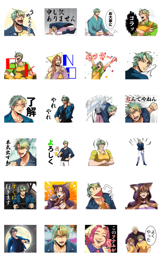 コードネーム死龍こと...瓜生龍臣のスタンプが登場!移動式メロンパン屋を愛しまくる男...毎日泣いている!看板娘のカリンちゃんもいます。