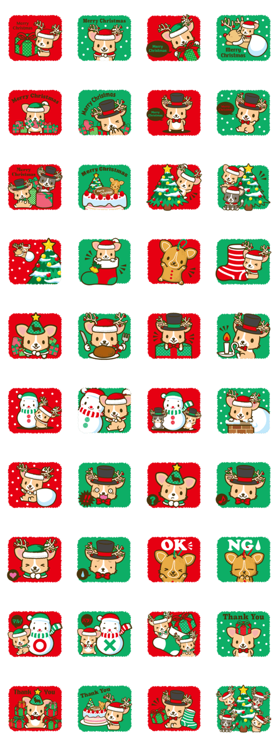 デザイナー「やなぎ」によるコーギー(クリスマスver.)のキャラクタースタンプvol.1!日常・挨拶・感情など使いやすいスタンプが勢揃いです!