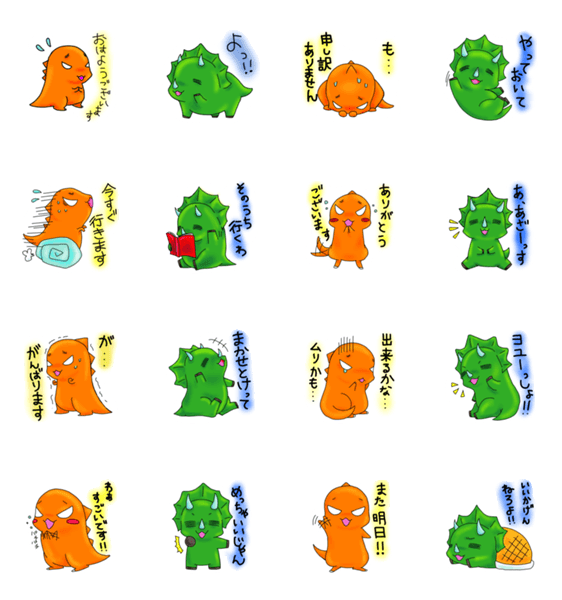 弱気な肉食恐竜と強気な草食恐竜 -LINEスタンプマニア