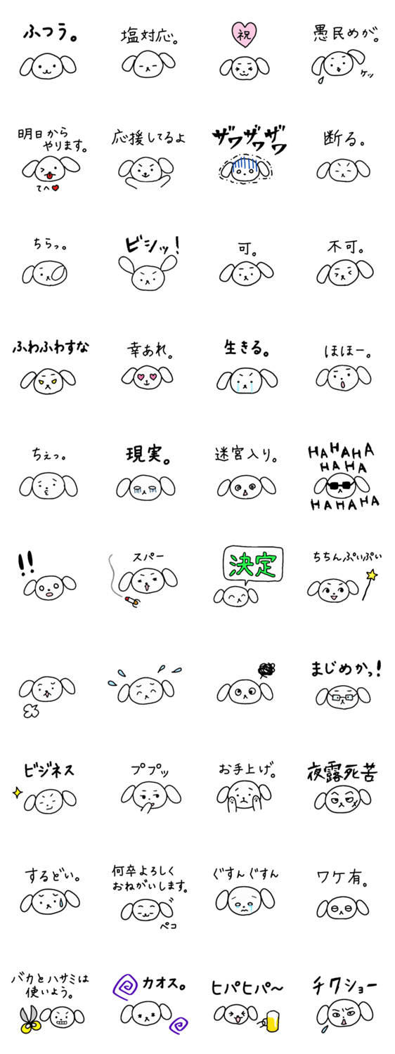 犬のワン助のスタンプです。ちょっとブラックなところがあるワン助。