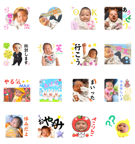 姫華ちゃんの成長と共に、スタンプにして喜怒哀楽の表現や言語の表現を表したものになります。 また、姫華ちゃんの日常1スタンプ発売されてて使用可能なので是非是非!