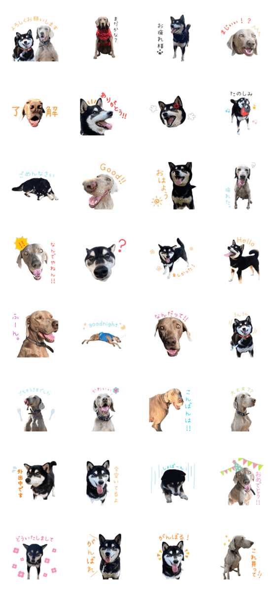 LINE Creators Studioでつくったスタンプです。犬、ワイマラナー、わんちゃん、柴犬、黒柴、動物好きの方是非使っていただけたら嬉しいです!
