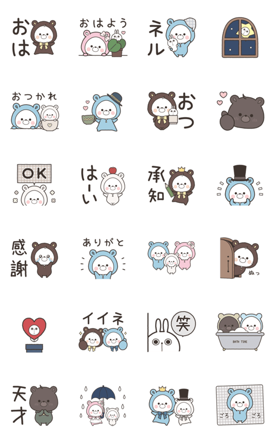 でか文字あり。くまぽこと仲間達のちょっとお洒落、ちょっと大人?なスタンプです。基本の言葉、挨拶もあり♪